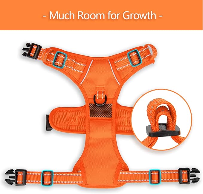 PoyPet No Pull Dog Harness, No Choke Reflective Dog Vest, Adjustable Pet Harnesses with Easy Control Padded Handle for Small Medium Large Dogs(Orange Matching Trim,M)