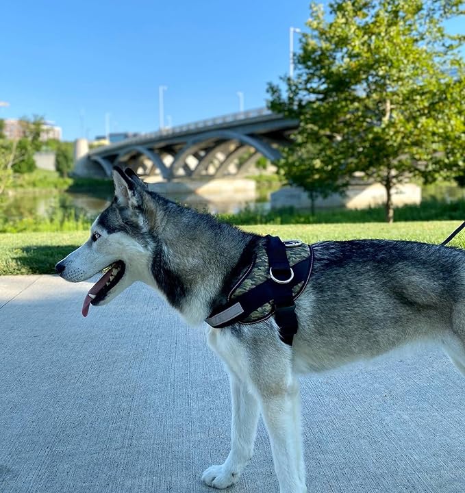 ShawnCo Essential Dog Harness, No-Pull Pet Vest with 3 Leash Clips, No Choke, Reflective, Adjustable and Padded, for Easy Walking and Training for Small, Medium and Large Dogs (Military Camo, M)
