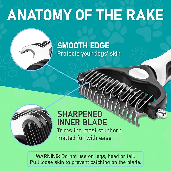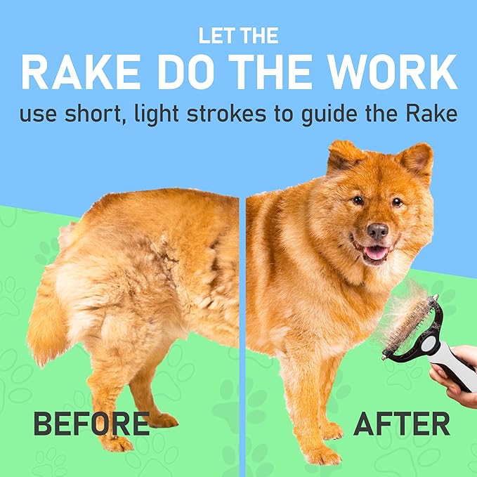 • EFFECTIVE DESHEDDING TOOL: Our dematting and deshedding tool gently removes loose hair and eliminates tangles, knots, dander, and trapped dirt. The perfect cat brush or dog grooming brush solution for pets with thick fur or dense double coats.