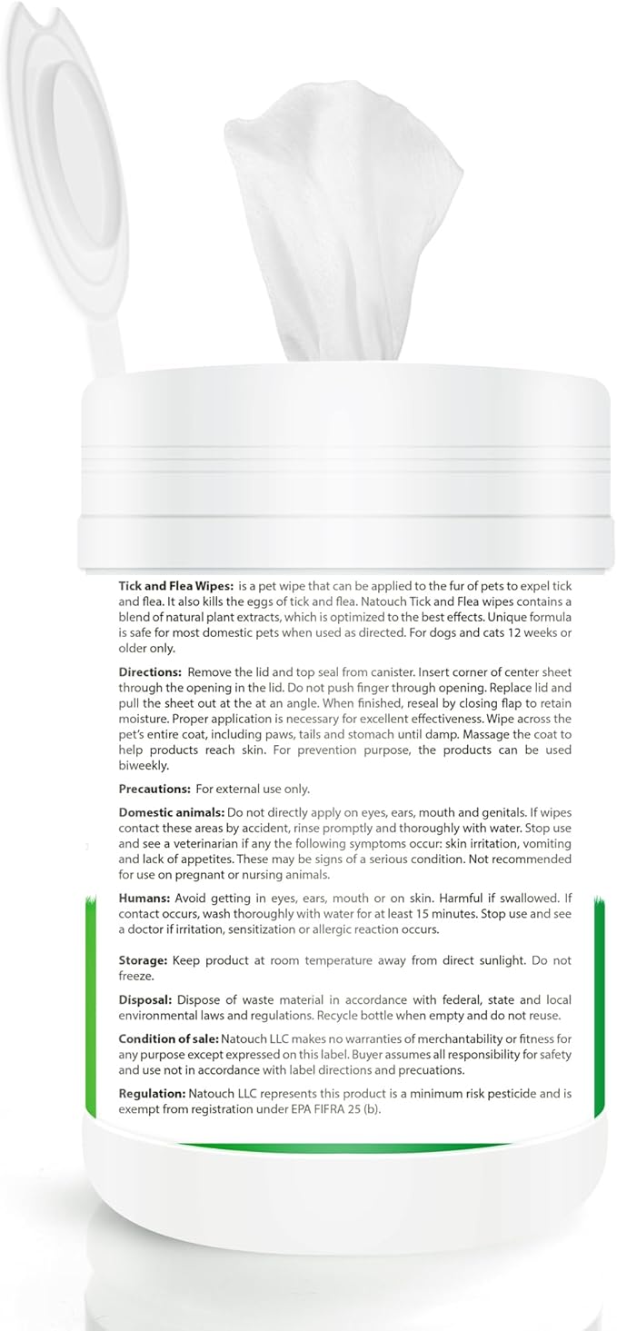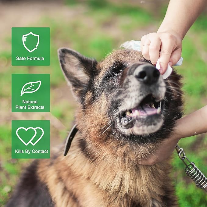 • PET FLEA AND TICK WIPES: Our pet grooming wipes with effective active ingredients help prevent and eliminate pests on pet coats. Great for preventing and killing fleas, flea eggs, flea larvae, and ticks