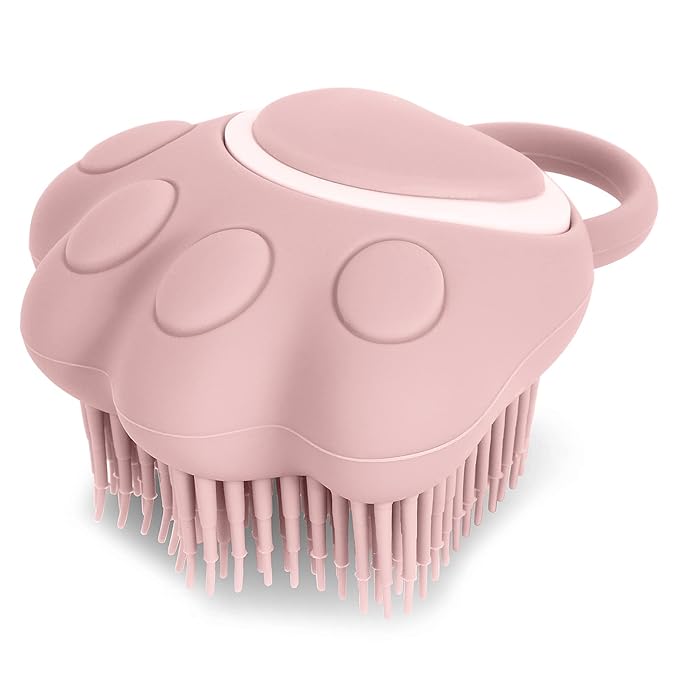Molain Silicone Rubber Dog Cat Grooming Massage Brush - Hair Fur Cleaning with Soft Shampoo Dispenser (Pink Paw Shape)