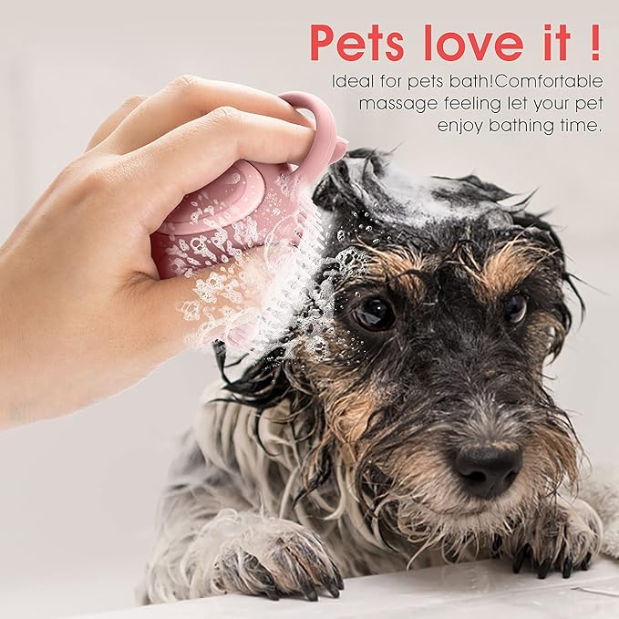 • 【Comfortable Massage Feelings】With shampoo dispensing design, the dog massage brush not only can provide a quick and thorough washing of your pets but also massage the skin to improve blood circulation. This pet brush can give your pet a very comfortable bath experience.