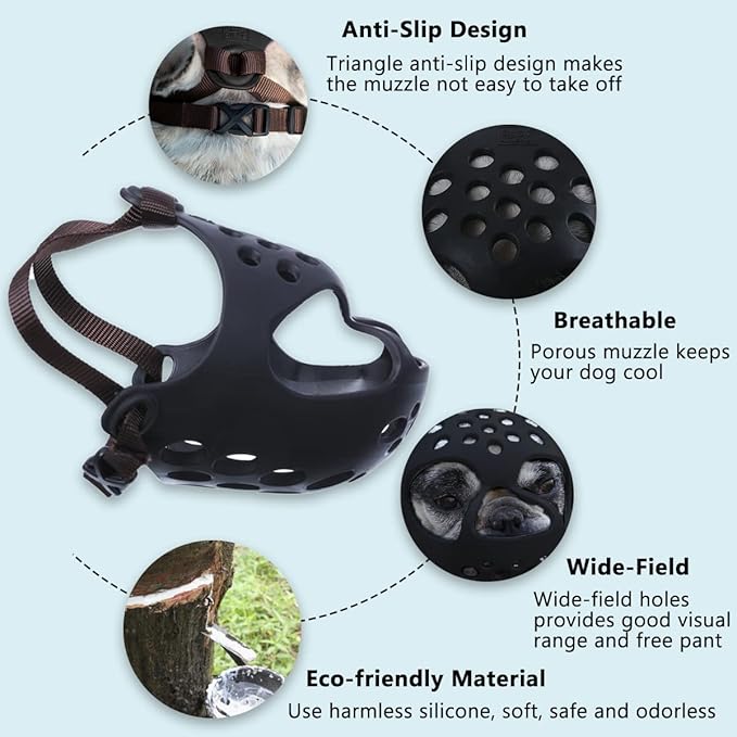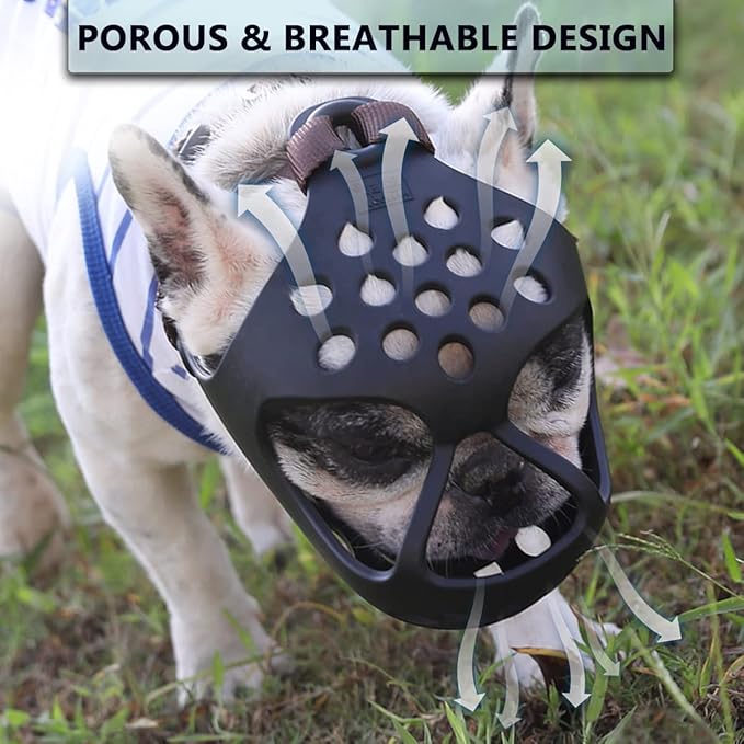- Adjustable & Secure: The adjustable nylon neck strap is designed with a buckle that allows you to quickly adjust the fit size for your dog. Even an escape master, this frenchie muzzles for biting can't be slipped off easily. If your dog tries to take off the muzzle, calmly guide them back and reward them for keeping it on. Over time, they will learn that wearing the muzzle for dogs is a normal part of their routine