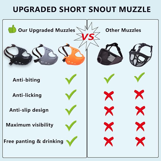 • Adjustable & Secure: The adjustable nylon neck strap is designed with a buckle that allows you to quickly adjust the fit size for your dog. Even an escape master, this frenchie muzzles for biting can't be slipped off easily. If your dog tries to take off the muzzle, calmly guide them back and reward them for keeping it on. Over time, they will learn that wearing the muzzle for dogs is a normal part of their routine