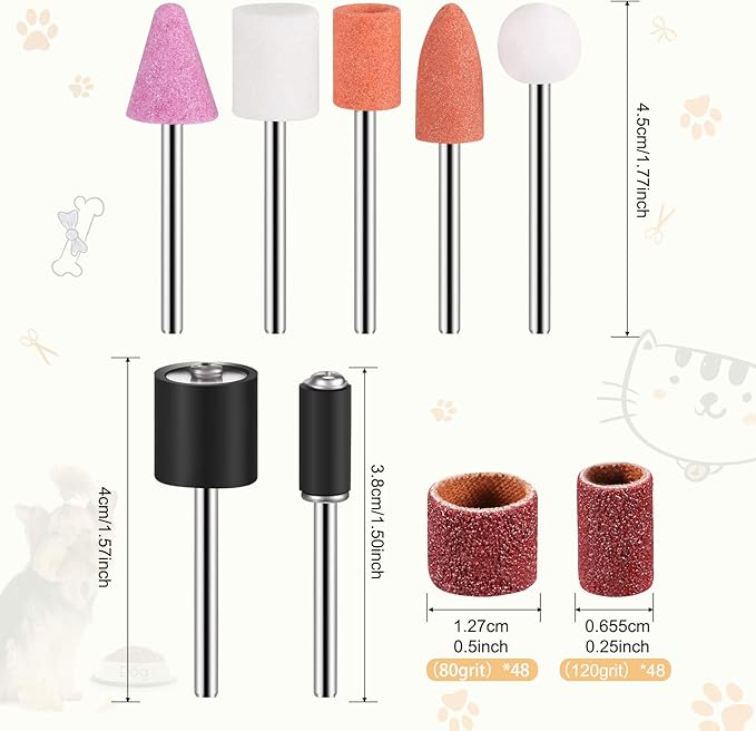 • Various styles: the package contains 96 pieces nails sanding bands and 11 pieces sanding bits in different styles, suitable for most pets, enough quantity to use, replace and share with family or friends who keep pets