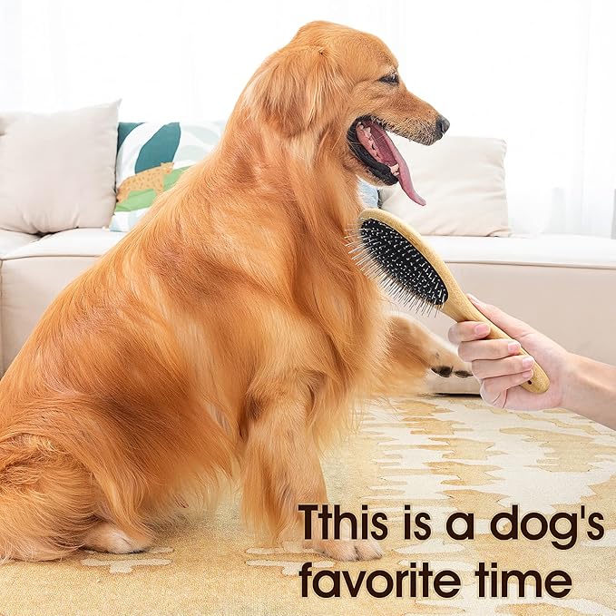 Molain Dog Grooming Brush - 20mm Stainless Steel Round Pins, Bamboo Handle, No Scratch Brush for All Hair Types (1Pc)