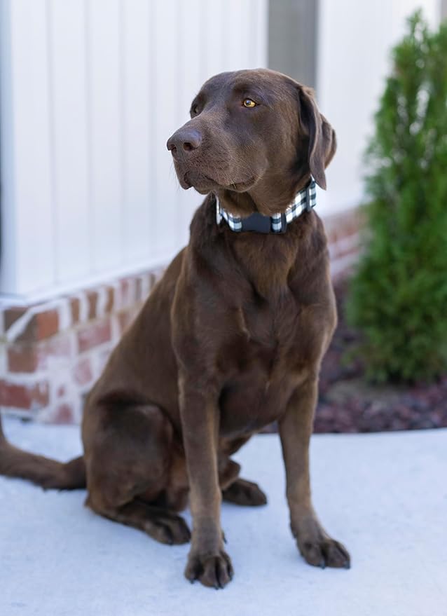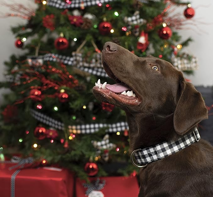 Country Brook Petz - Deluxe Black & White Buffalo Plaid Dog Collar - Made in The U.S.A. - Plaid and Argyle Collection Featuring Charming Designs (1 Inch, Extra Large)