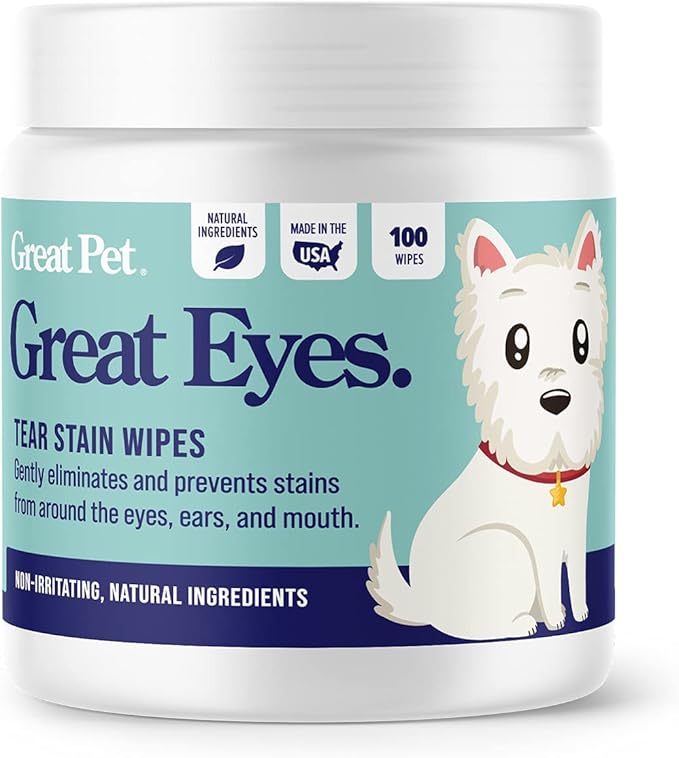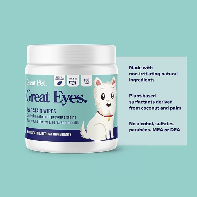 Great Eyes - Safe & Gentle Tear Stain Remover for Dogs - Natural Eye Wipes for Dogs - Made in The USA & Easy to Use Pre-Soaked Wipes - 100 Wipes