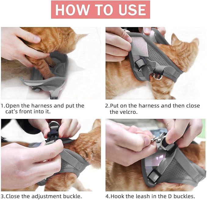 Cat Vest Harness and Small Dog Vest Harness for Walking, All Weather Mesh Harness, Cat Vest Harness with Reflective Strap, Step in Adjustable Harness for Small Cats (Pink-Pattern, Medium)