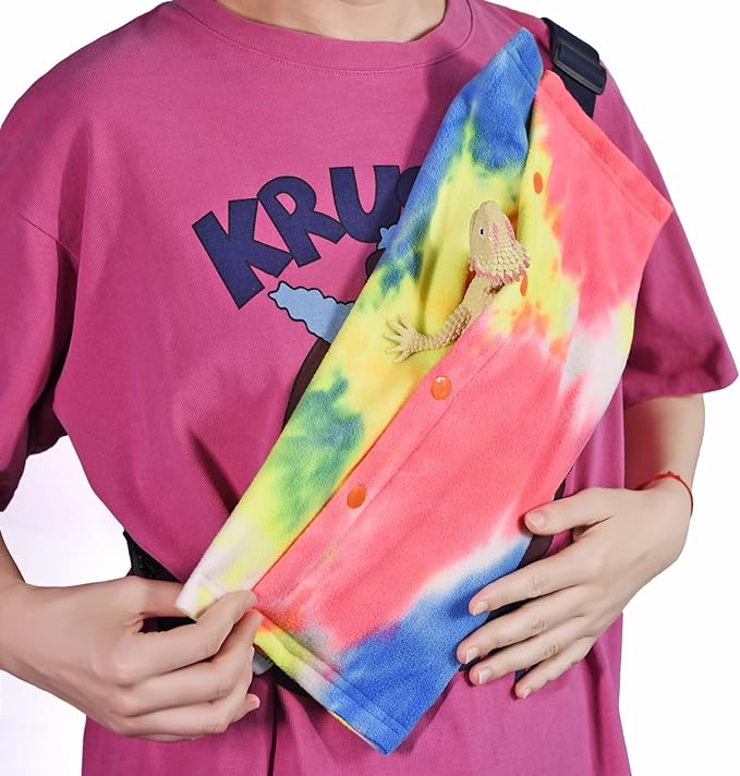 LIKZINWA Small Animal Sling Carrier,Bearded Dragon Carrier Lizard Carrier and Reptile Carrier with Adjustable Strap (Yellow-red)