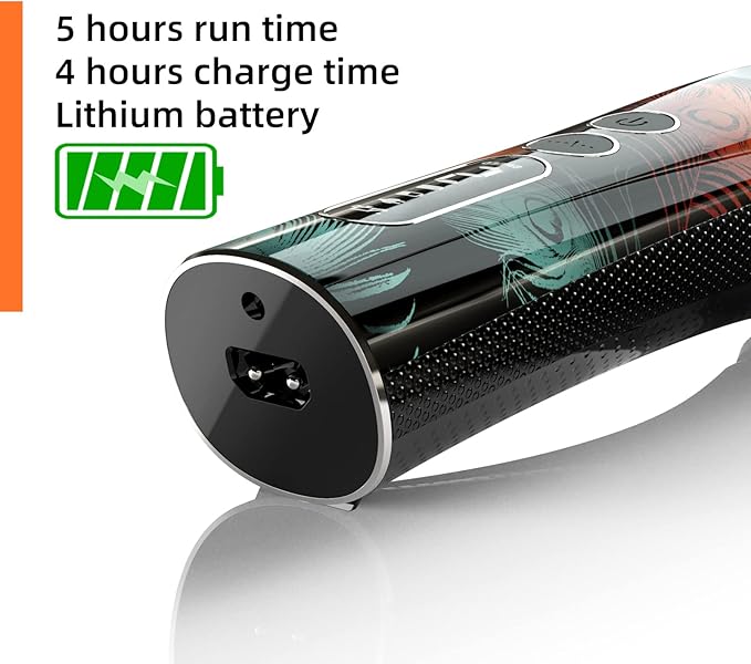 • With 5 different speeds, 5000/5500/60000/6500/7000RPM and low noise, lower than 60dB. 5 hours run time and requires 4 hours to charge.