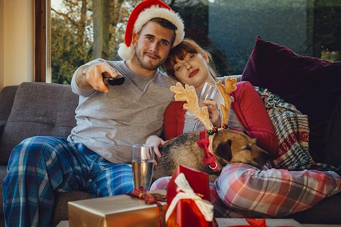 MACA Bates Dog Christmas Red Woolen Collar with Nylon- Warm and Soft Bows Dog Collar for Large Medium Small Dogs, Adjustable Dog Collar with Metal Buckle for Boy and Girl in Winter, XS Puppy Collar