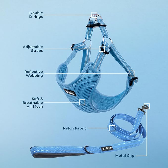 Best Pet Supplies Voyager Adjustable Dog Harness Leash Set with Reflective Stripes for Walking Heavy-Duty Full Body No Pull Vest with Leash D-Ring, Breathable All-Weather - Harness (Baby Blue), S