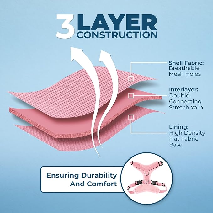 • ALL WEATHER AIR MESH: Made a soft, breathable air mesh, this fully adjustable and lightweight pet harness is perfect for walks all year round