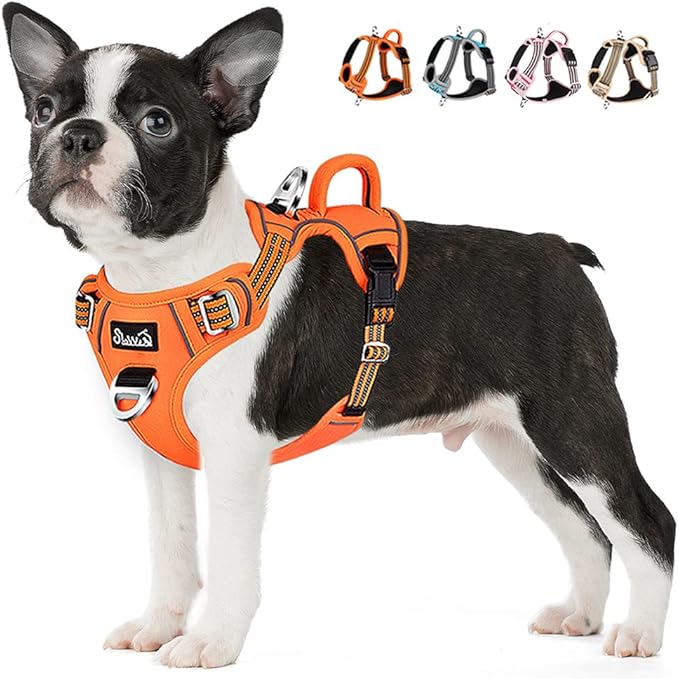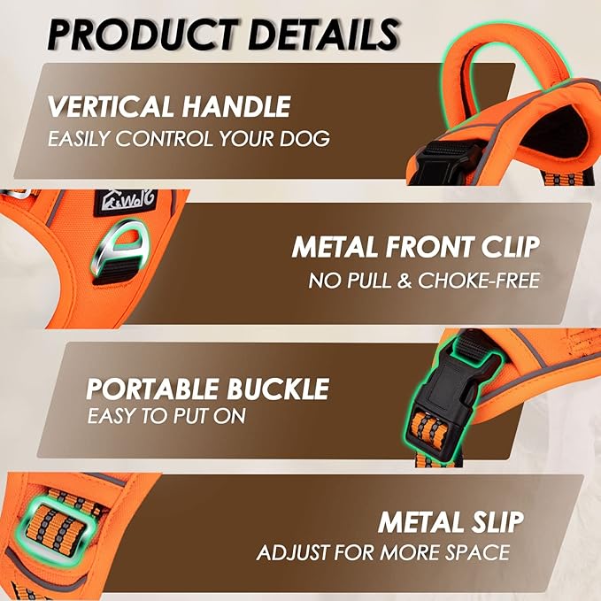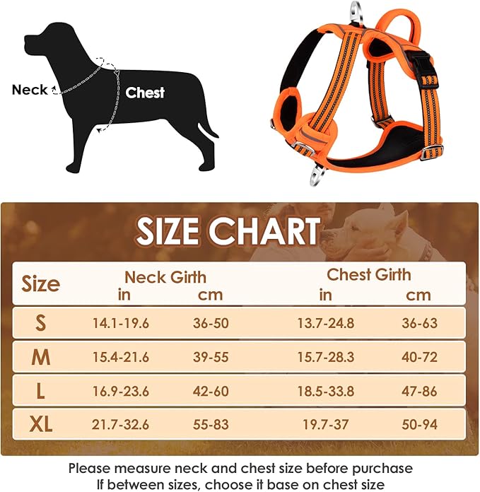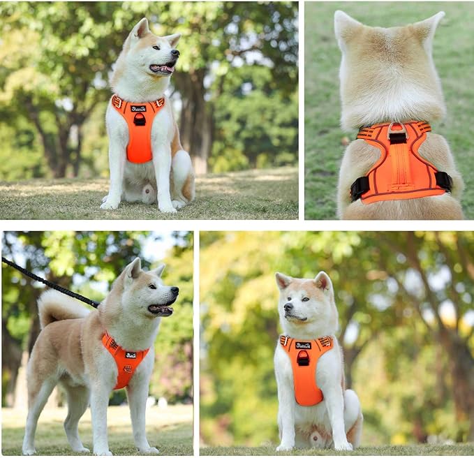Lukovee No Pull Dog Harness, No Choke Adjustable Dog Harness with 2 Leash Clips and Easy Control Vertical Handle, Soft Padded Dog Vest for Medium and Large Dogs (Medium, Orange)