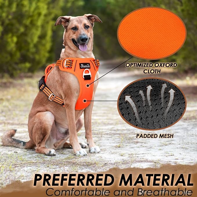 • 【HIGH-END MATERIAL】--- Made of 100% polyester, scratch-resistant Oxford mesh fabric and soft sponge, our large padded dog harness is lightweight, breathable, durable and skin-friendly. This easy walk harness will protect the spinal nerves of the dog and provide all day comfort for your pet friend.