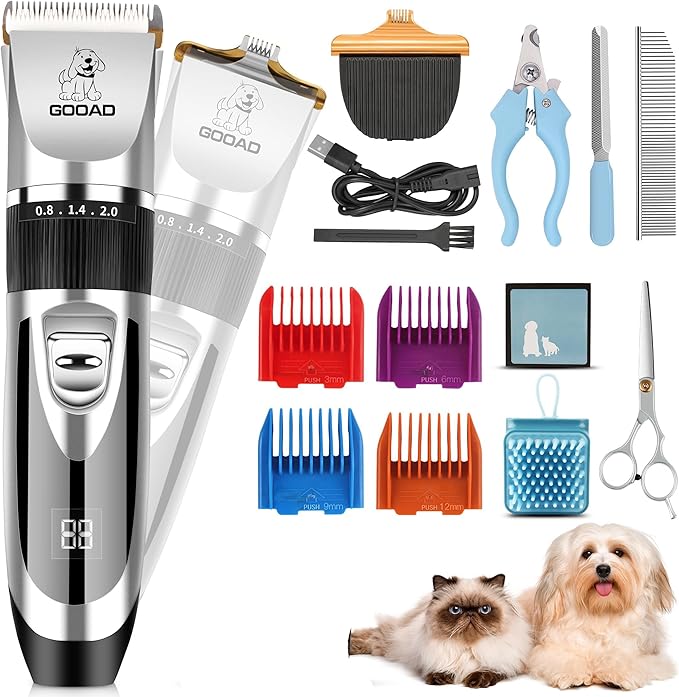 Dog Clippers Grooming Kit and Paw Trimmer,Low Noise, Electric Quiet,Rechargeable, Cordless, Pet Hair Clippers for Thick Coats, Dog Trimmer Grooming Tool, Shaver for Small and Large Dogs Cats