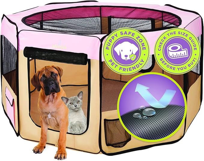 • Quality: Pet playpen with protected seams and reinforced corners to ensure your pet's safety made from durable quality & water-resistant materials.