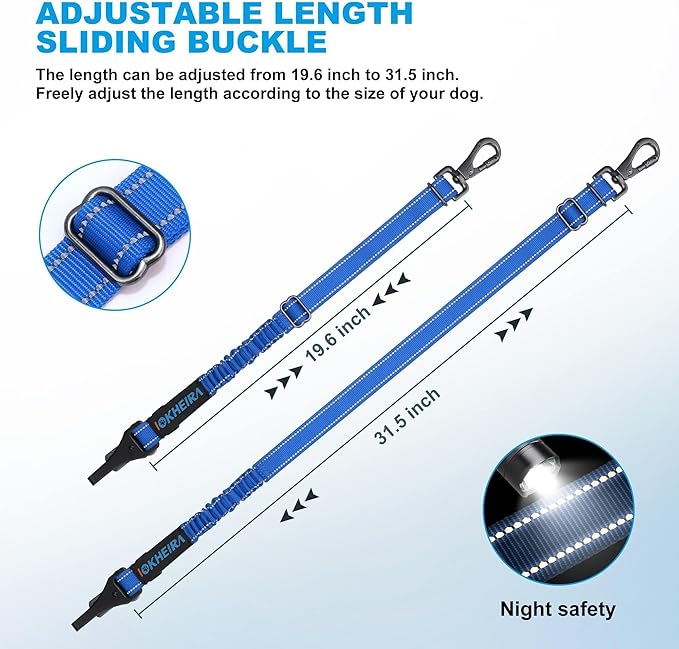 IOKHEIRA Dog Seat Belt 3-in-1 Car Harness for Dogs Adjustable Safety Seatbelt for Car Durable Nylon Reflective Bungee Fabric Tether with Clip Hook Latch & Buckle, Swivel Zinc Alloy Carabiner (Bule)