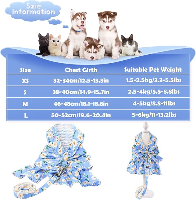 • <p>🍋【Lovely Design】Flower or fruit patterns on the dress with bow on the back, this lovely dress harness vest is special and unique, making your pet baby more cute and attractive. The doggy dress harness is cute, elegant and fashionable with beautiful patterns and bright color, making your pets the most standing out star in the party or the center of the streets.</p><p><br></p><p><br></p><p><br></p>