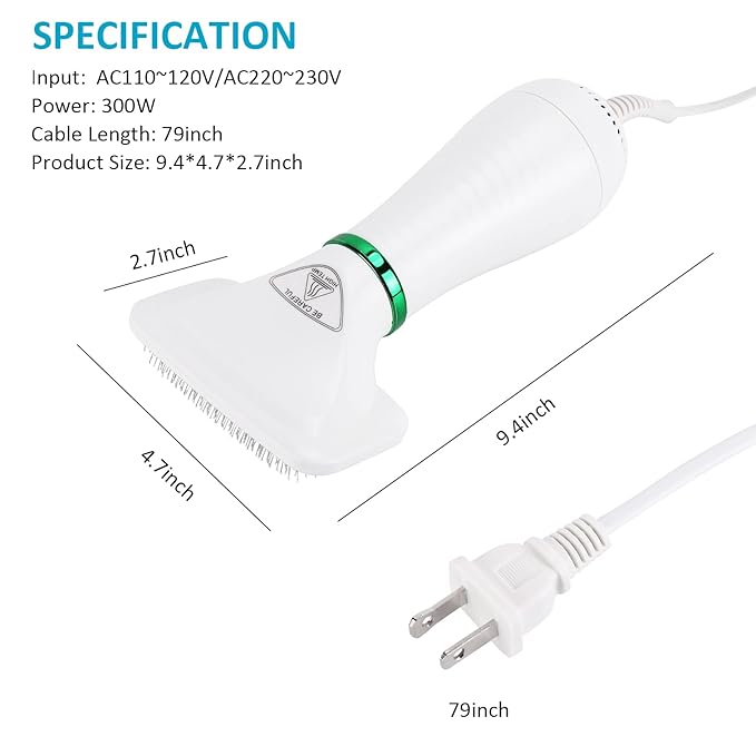 • 【2 in 1 Pet Hair Dryer 】 Our pet grooming dryer is a dryer and slicker brush in one, designed to make drying and grooming easier and more efficient than before. With the power of a dog hair dryer and the functionality of a hair comb brush, you can now dry your pet after bathing while also removing tangles and loose fur to keep your pet's hair soft and neat.