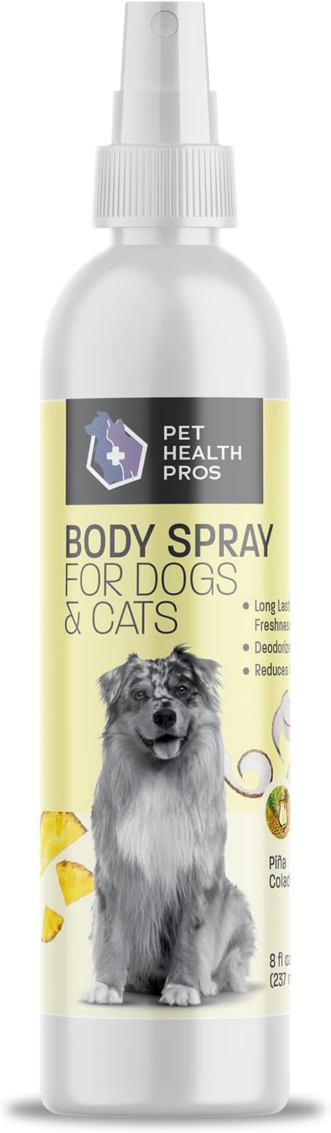 • LEAVES A FRESH SCENT: Pina colada scented grooming spray for dogs and cats leaves your puppy or kitten with a fresh smelling coat, getting rid of smelly dog or stinky cat odor without the need for shampoo or bath time. Pet cologne spray that smells so good, you'll want to use it yourself!