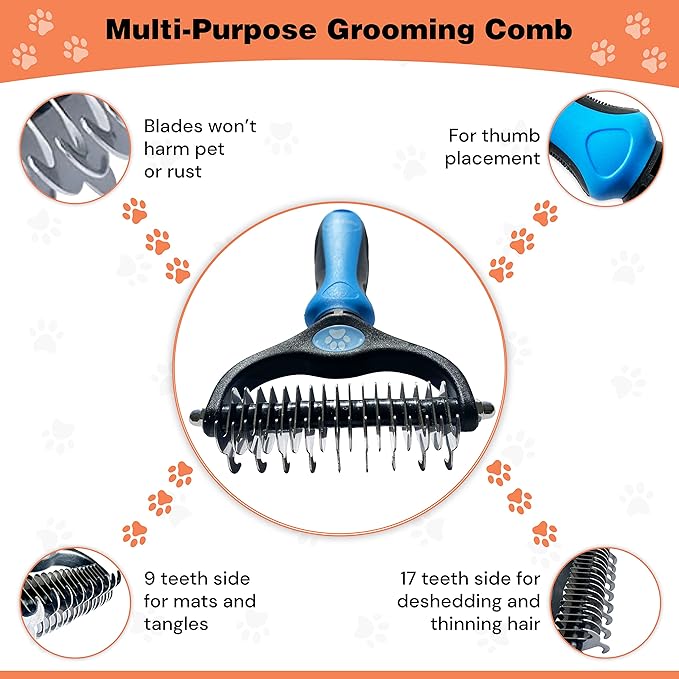 • ๐Ÿพ Attention all pet owners! Our 2-in-1 comb is a must-have for your furry friends. With its 9-tooth side for tackling tough mats and tangles and a 17-tooth side for de-shedding and thinning hair, this comb is a game-changer. Don't hesitate, get yours today!