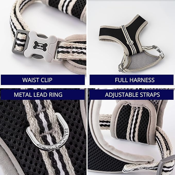 HUGO & HUDSON Dog Harness No-Pull Pet Harness Adjustable Quick Dry Mesh Padded Vest, Black, M