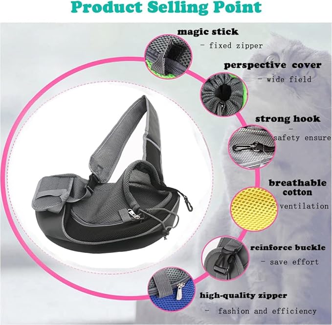 • 【Comfort and Breathable】Dog carrier sling made from High-quality oxford, breathable mesh fabric, comfortable sponge shoulder strap, the thickened bottom can prevent pets from scratching, and bring a more comfortable travel experience for pets
