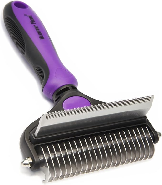 • Double Sided Multifunctional Design: This pet grooming brush is specially designed with dematting side and deshdeeding side.Makes it a super effective all in one grooming tool.Start with the blades side to cut the mats and tagles.Then switch to the other comb side for thinning and deShedding