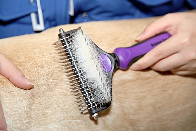 • No Scratch and No Pain: Both sides of blades and comb are end rounded, gently brush the pet coat without any scratching or irritation.Smoothly remove the mats, tangles, knots, loose hair with the Razor sharp dematting blades