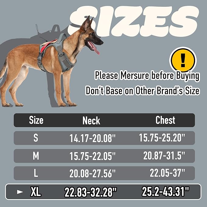 • ▶EXTRA LARGE TACTICAL DOG HARNESS◀Neck Girth: 22.83"-32.28"(58.0--82.0cm), Chest Girth: 25.2"-43.31" (64.0--110.0cm), Weight:75-135lbs(34--63KG). Ideal for Extra Large Breeds such as German Shepherd, Belgian Malinois, Golden Retriever, Huskie, Labrador, Akita, etc. A professional working dog vest for service, police or military dogs, but also good for hunting and all outdoor companion dogs.