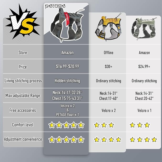 • ▶MILITARY-STANDARD MATERIAL & BREATHABLE◀Heavy duty vest(0.35"thickness)can ensure comfort and firmness, made of 1050D Nylon with sturdy stitching for extra durability, suitable for all fields use: training, hunting, working. Well padded in every pressure load point to protect your dog’s skin, while the breathable air mesh keeps your dog ventilated and comfortable. Two V-rings can bear great pulling force (1512 lbs Proof-Load Test ).