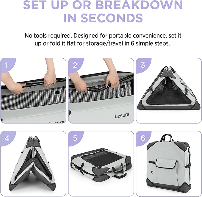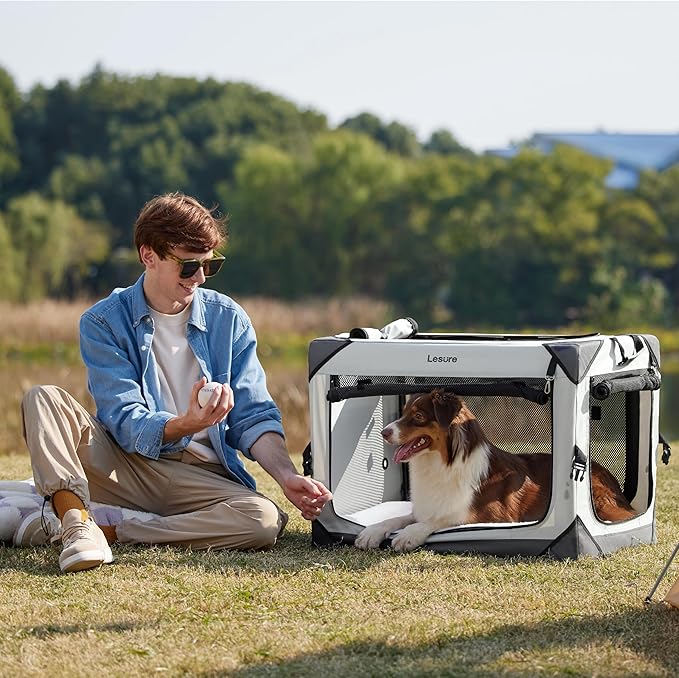 • Foldable and Space-Saving Design: This soft dog crates for large dogs provides a safe, comfortable dwelling for your pet and can be folded down in seconds to save space when traveling or when not in use. This soft-sided dog crate is quick and easy to set up with no tools required.