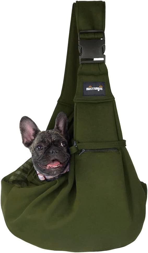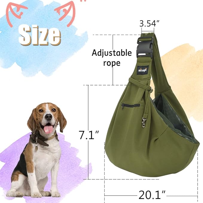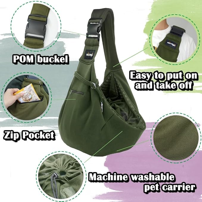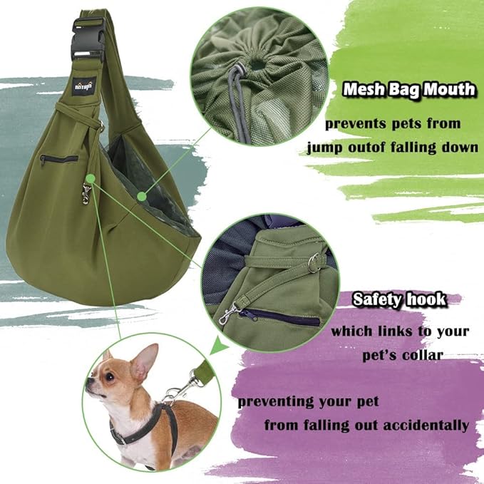 NATUYA Pet Dog Sling Carrier - Dog Sling with Net Bag for Carrier Dogs Cats-Hands Free Pet Bag-Buckle net Pocket pet Bag (Green)