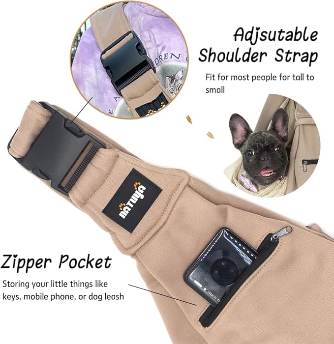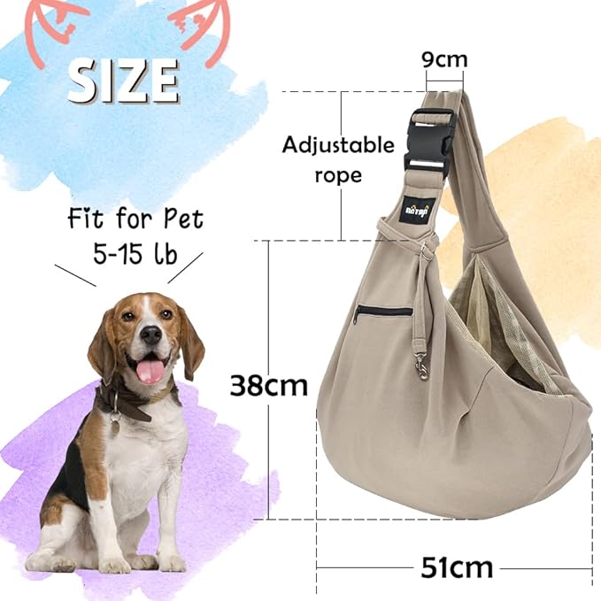 NATUYA Pet Dog Sling Carrier - Dog Sling with Net Bag for Carrier Dogs Cats-Hands Free Pet Bag-Buckle net Pocket pet Bag (Khaki)