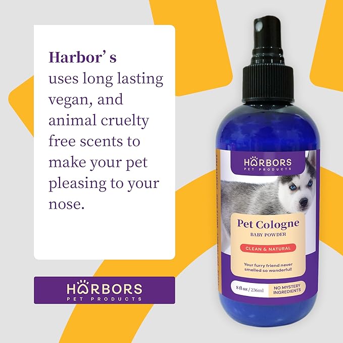 • GROOMER RECOMMENDED. Our pet cologne is recommended by professionals for dogs, cats, puppies, kittens, ferrets, guinea pigs and rabbits of all ages with normal or sensitive skin. A few spritzes will have your beloved fur companion smelling like they just came from the grooming day spa. Harbor’s Baby Powder pet cologne is suited for all types of fur.