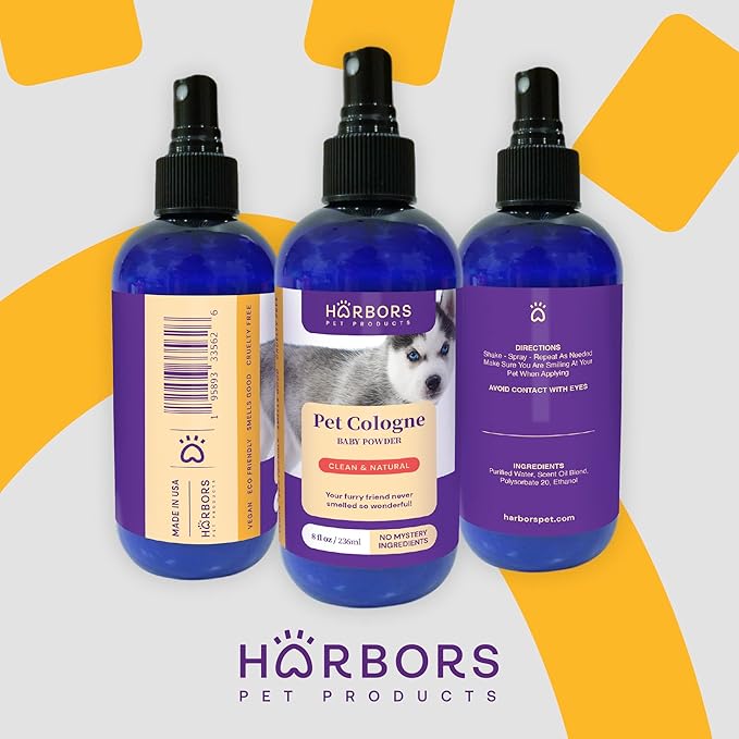 • GROOMER RECOMMENDED. Our pet cologne is recommended by professionals for dogs, cats, puppies, kittens, ferrets, guinea pigs and rabbits of all ages with normal or sensitive skin. A few spritzes will have your beloved fur companion smelling like they just came from the grooming day spa. Harbor’s Baby Powder pet cologne is suited for all types of fur.