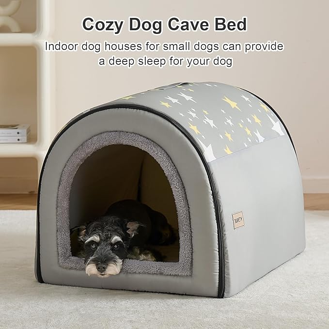 Jiupety Indoor Dog House, 2-in-1 Portable Foldable House Bed with Cover, Pet Tent & Cave Bed for Medium Dogs, XL(29"×21"×20"), Up to 44 Lb, Grey