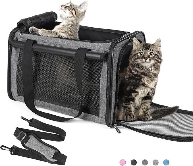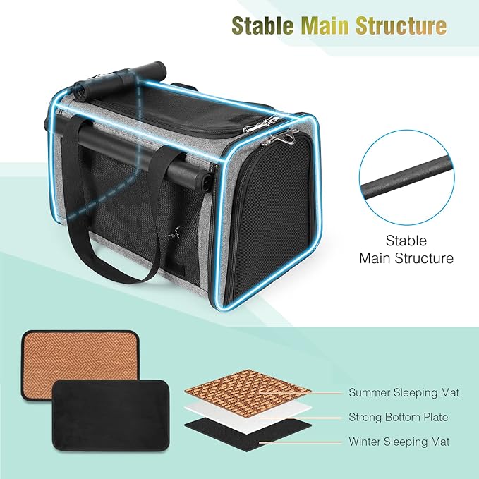• DURABLE & STURDY - This cat carrier is made of durable and lightweight polyester fabric. Reinforced on the border of the pet carrier, the shape is more nice and sturdy.