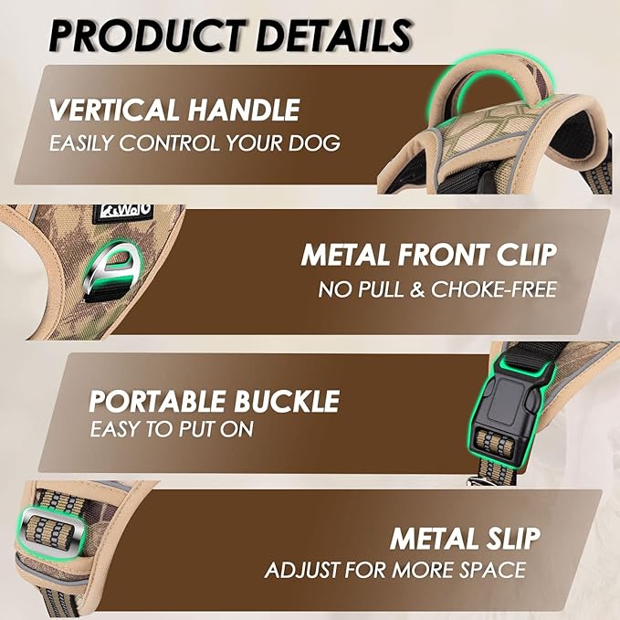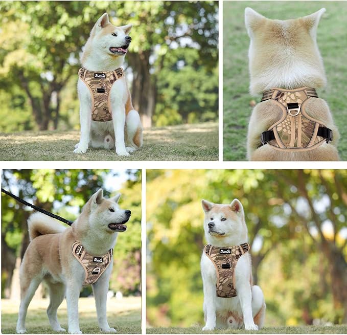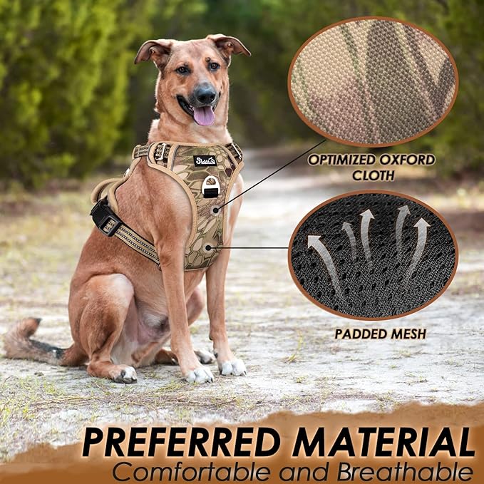 Lukovee No Pull Dog Harness, No Choke Adjustable Dog Harness with 2 Leash Clips and Easy Control Vertical Handle, Soft Padded Dog Vest for Medium and Large Dogs (Camouflage)