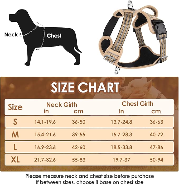 • 【VERTICAL HANDLE OFFER MORE EVEN STRESS】--- Forced on three sides design help to evenly distribute pulling pressure into three parts of the body to prevent choking. The design of heavy duty dog harness would be more easy to control our dogs.