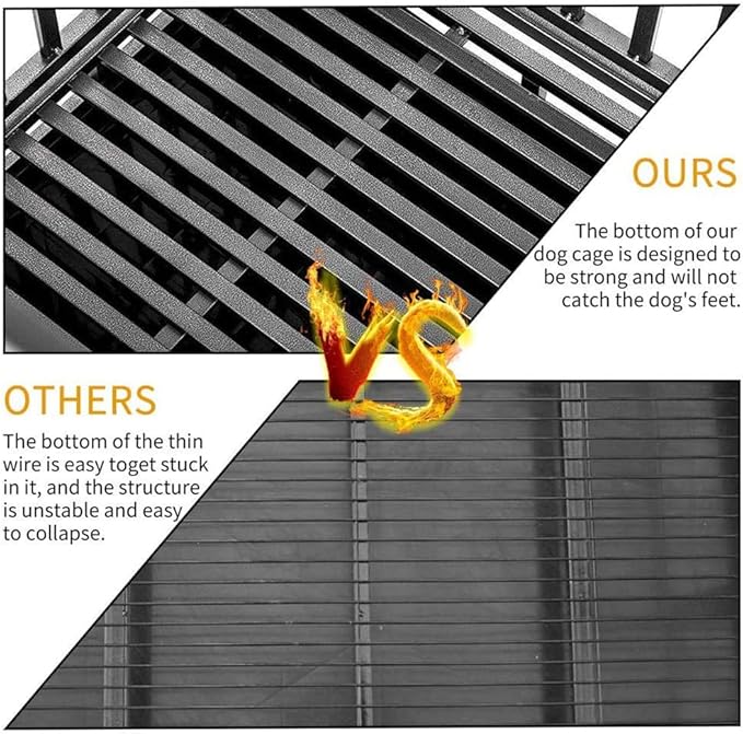 • Spire-triangle&Double door&locking caster design: The spire-triangle roof can broaden the space of the cage. Double door design: The big front door is suitable for pet in and out for you interacting with your dog. 360 degree rotated locking casters can help you to move crate anywhere easily and lock the wheels to keep the crate in place.