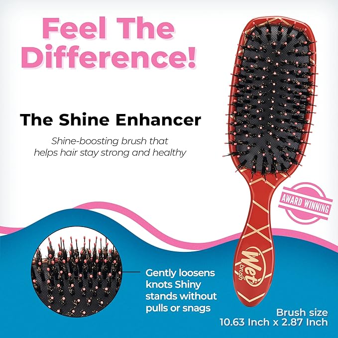 • Shine Enhancer: The Shine Enhancer is a shine-boosting brush that helps hair stay strong and healthy! Gently loosens knots, while spreading hairs natural oils for shiny strands, without pulling or snagging.
