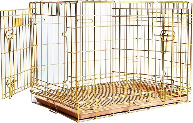 - Golden & Thickened Crate: Made of premium metal wire with a rose gold nano coating, this exclusive homey pet dog crate extends its life and provides resistance against rust, fading, peeling, and scratches. Not easy to bend or bite. The comfortable, den-like space provides enough ventilation and visibility. Don't let your dog feel cooped up. Reduces cage anxiety and chewing in your dog