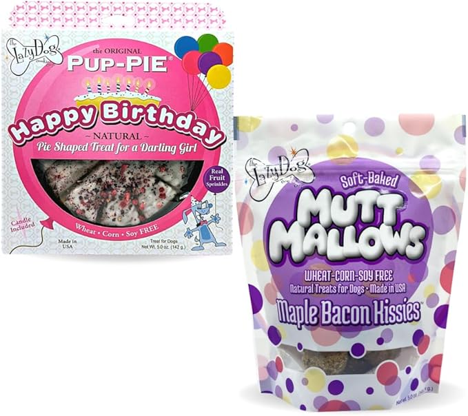 • A GREAT TREAT FOR YOUR FURRY FRIEND - The Lazy Dog Pup-PIE is a special treat perfect for celebrating your dog's birthday. Includes a 5oz bag of soft baked Mutt Mallows so your Dog can enjoy a special treat even after their special day!