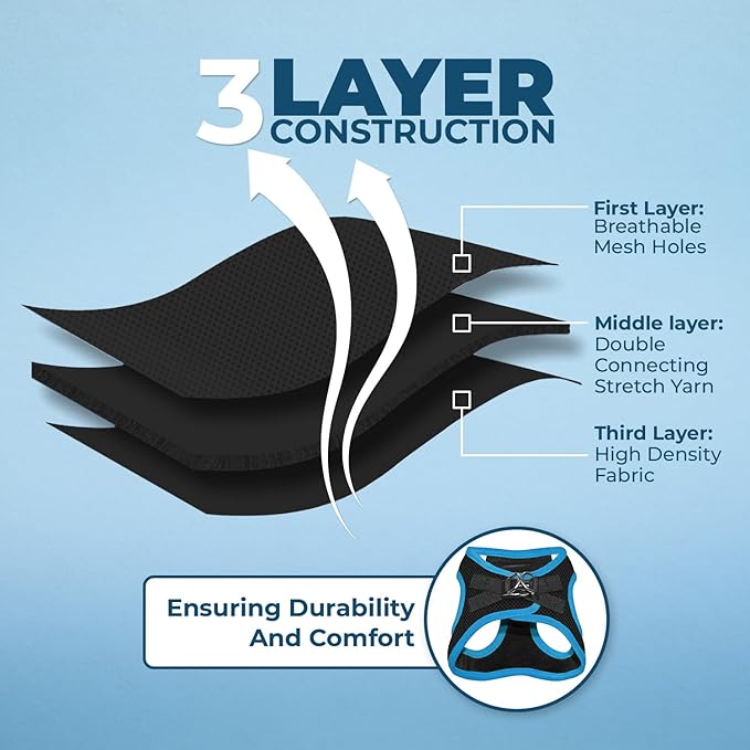 • Comfort All Year: Made with a soft and breathable air mesh, this lightweight, fast drying harness ensures maximum comfort for your pet during walks, regardless of the season