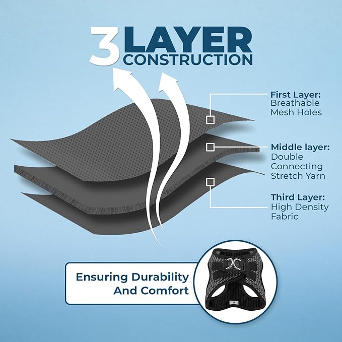 • Comfort All Year: Made with a soft and breathable air mesh, this lightweight, fast drying harness ensures maximum comfort for your pet during walks, regardless of the season