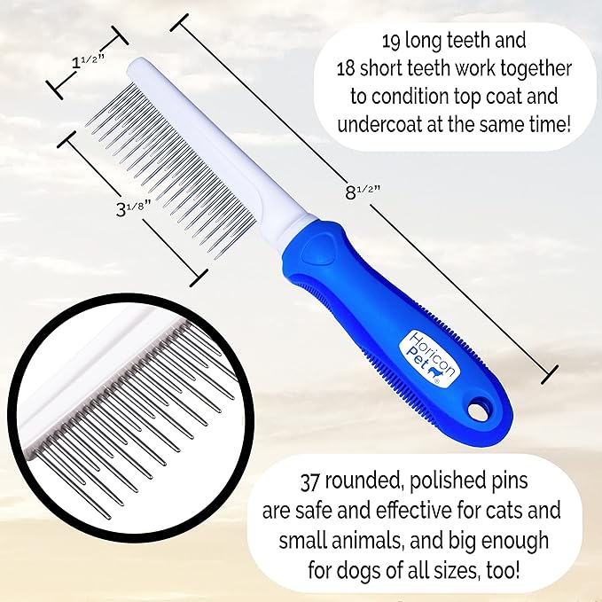 Detangling Dog Comb with Long & Short Stainless Steel Metal Teeth - Dogs, Cats & Small Animals for Removing Matted Fur, Knots & Tangles