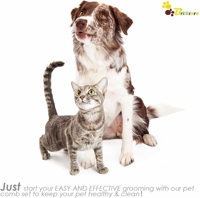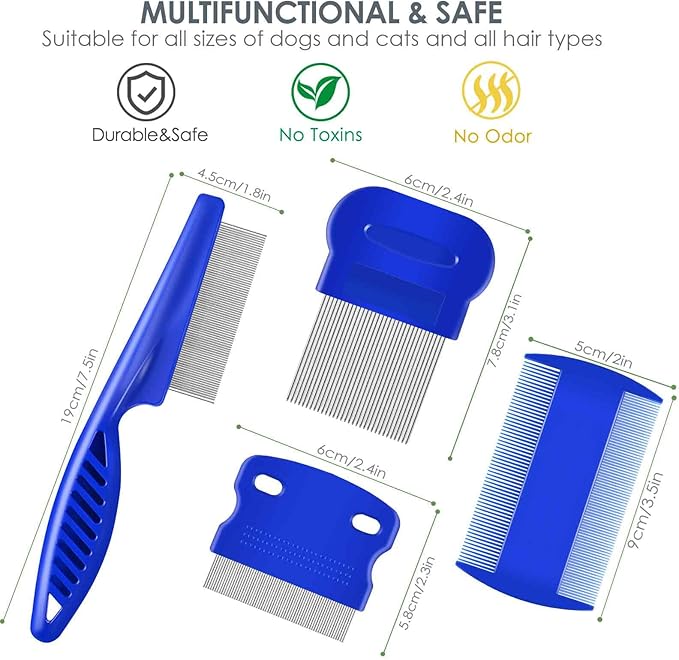 • THOUGHTFUL SET: Our pet grooming comb set includes 4 combs, 1 tooth comb, 1 double sides lice comb, 1 long-needle & 1 short-needle comb to meet different needs. Perfect for straightening out the knotted tangles hair, as well as finishing and fluffing